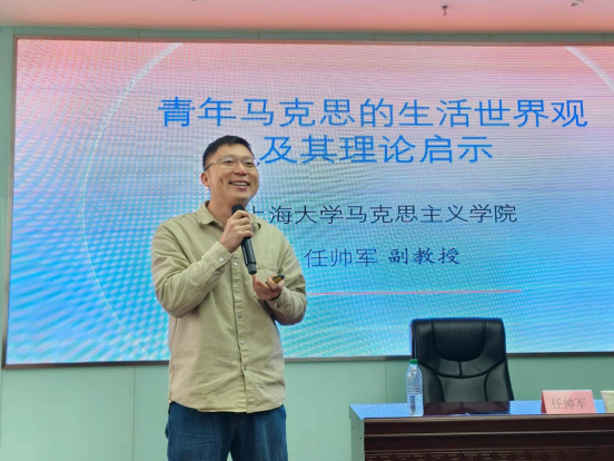 任帅军以“青年马克思的生活世界观及其理论启示”为主题,围绕 “在生活中解放人”、“群众史观与生活世界观”等核心板块,梳理马克思、恩格斯思想发展脉络,剖析思辨唯心主义脱离现实生活的局限,强调 “生活” 在历史唯物主义形成中的关键地位,指出群众是历史创造者,无产阶级肩负解放自身与社会的使命。同时,讲座结合新时代背景,探讨建设美好生活的路径,并阐述该世界观对马克思主义理论工作者、高校教师及研究生的启示,为理解马克思主义当代价值提供重要参考。