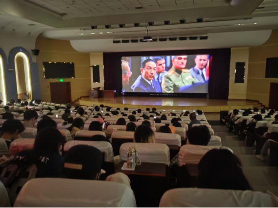 活动分阶段进行。在观影环节,同学们分批集体观看了三部影片。三部影片不仅让学生看到战争的残酷与和平的珍贵,更让学生对中国共产党领导下的全民族抗战有了更为具象和生动的认知。